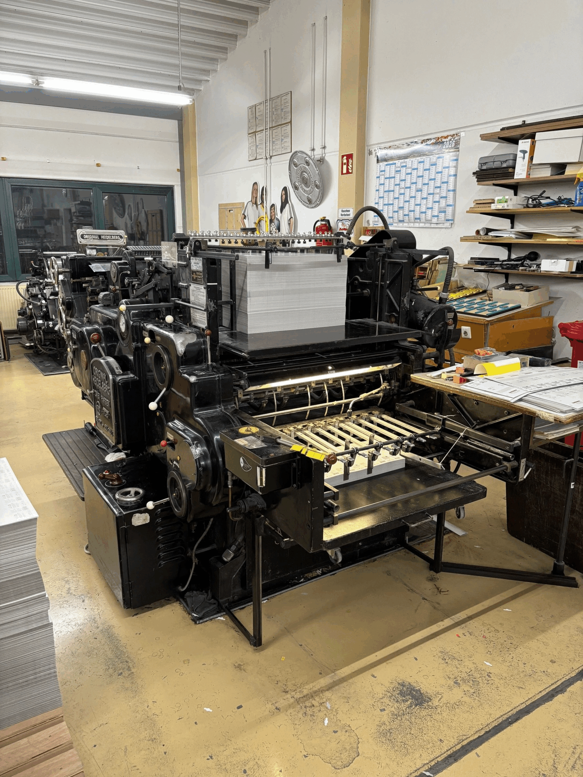 Die Druckerei besteht an diesem Standort seit über 45 Jahren. Die Leistungen reichen von Werbetechnik, über Grafikdesign und Digitaldruck bis hin zu Offsetdruck und Verpackung. Beeindruckend zeigten sich beim Rundgang die modernen, hochleistungsfähigen Druckmaschinen von „Ryobi“, sowie die digitalen Druckmaschinen von Canon. Hier werden Prospekte, Flyer, Etiketten, Verpackungen, Kataloge, Visitenkarten, Speisekarten, Direktmailings, Veredelungen von Papieren und viel mehr hergestellt. Eine historische Heidelberger OHZ (1964) kommt ebenfalls zum Einsatz.
